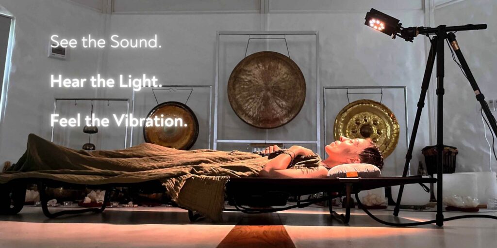 Multisensory integration: synchronized light, sound, and full-body vibration—especially powerful when pairing the hypnagogic lamp with the Enkidu vibroacoustic bed for a complete mind-body experience.